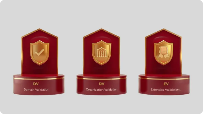 تفاوت بین گواهی های SSL به میزان اعتبارسنجی و اطلاعات نمایش دادهشده در مرورگر خلاصه می شود. سه نوع اصلی گواهی های SSL عبارتاند از DV (Domain Validation)، OV (Organization Validation)، و EV (Extended Validation) که هرکدام سطح متفاوتی از بررسی و نمایش اطلاعات را ارائه میکنند. در ادامه تفاوت های هر کدام را در قالب جدول مقایسه خواهیم کرد: